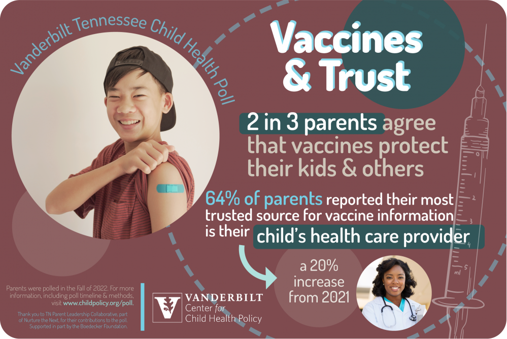 New analyses of the latest annual Tennessee Child Health Poll conducted by the Vanderbilt Center for Child Health Policy in late 2022 has found parents across the state reporting their children’s health care providers as the most trusted source for information about vaccines.